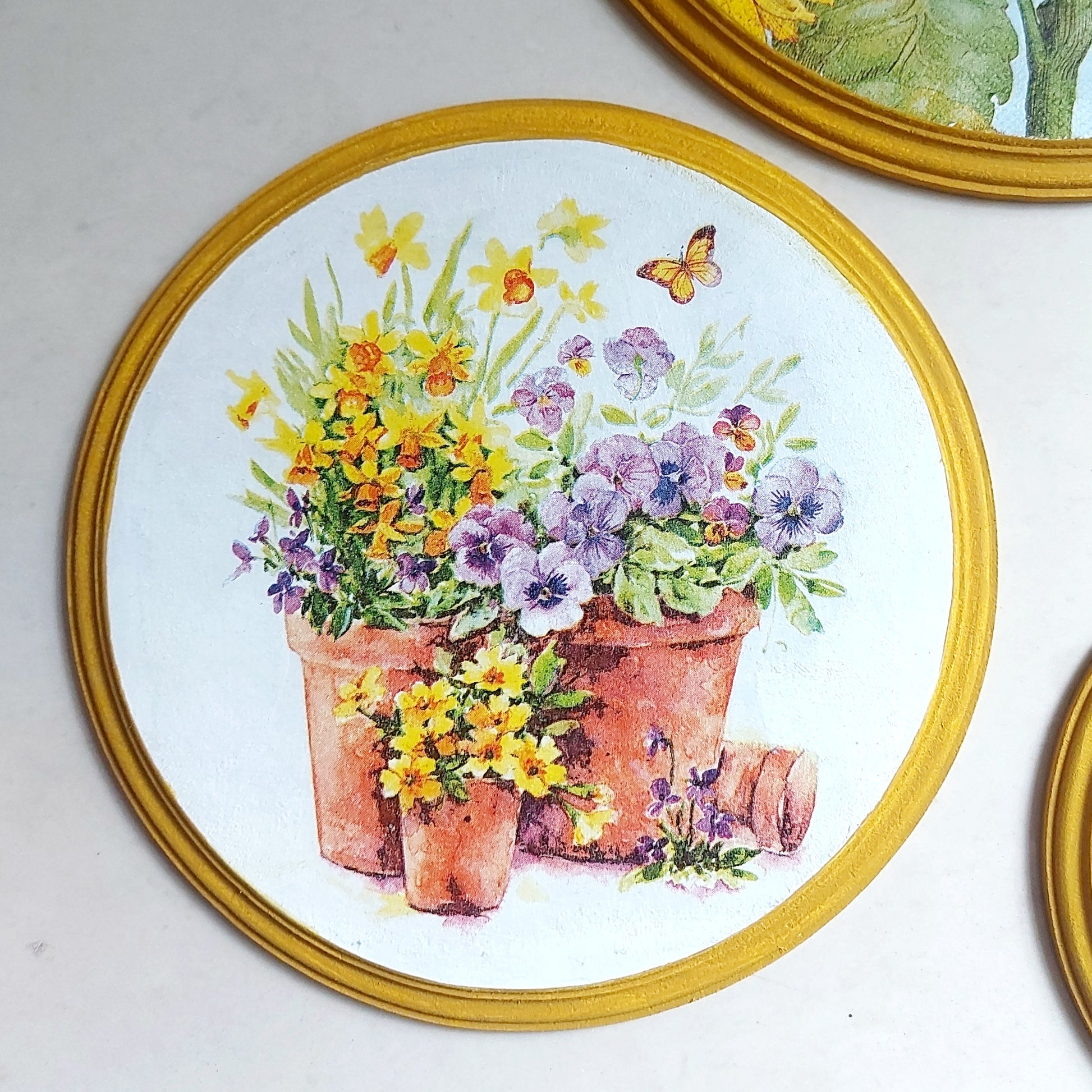 Flower Pots - Round Wall Plates | Yellow Wall Decor | Pastel Woods